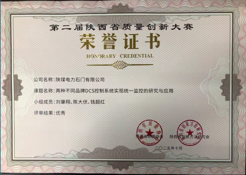 陜煤石電:《兩種不同品牌DCS控制系統(tǒng)實(shí)現(xiàn)統(tǒng)一監(jiān)控的研究與應(yīng)用》獲陜西省質(zhì)量創(chuàng)新大賽優(yōu)秀獎